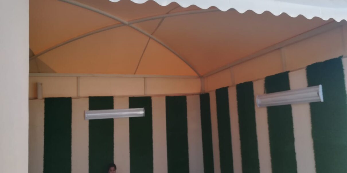 هذا بجانب تركيب المظلات الحديدية على شكل خشب، وايضا مظلات قماش مصنوع من البولي ايثيلين أو vpc.