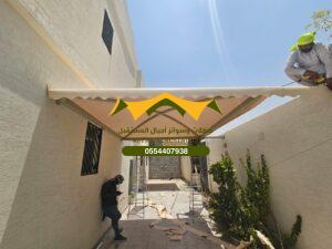 - يتم تركيب مظلات خارجية قماش في الحوش، مواقف السيارات، وجلسات الحدائق.